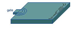成型制品表面的線狀痕跡,此痕跡顯示了熔料流動的方向。